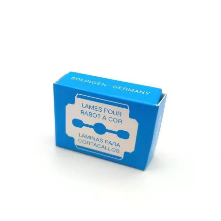 Caja con 10 hojas de repuesto para máquina cortacallos Hans Kniebes. Acero Inoxidable. Láminas para cortacallos. Solingen.